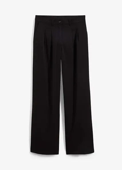 Graumelierte Hose mit hohem Bund und weitem Bein mit Falten an der Vorderseite