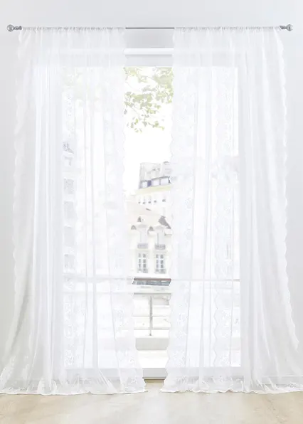 Moderne Gardine aus hochwertiger Jacquard Qualität mit abgerundetem Saum.