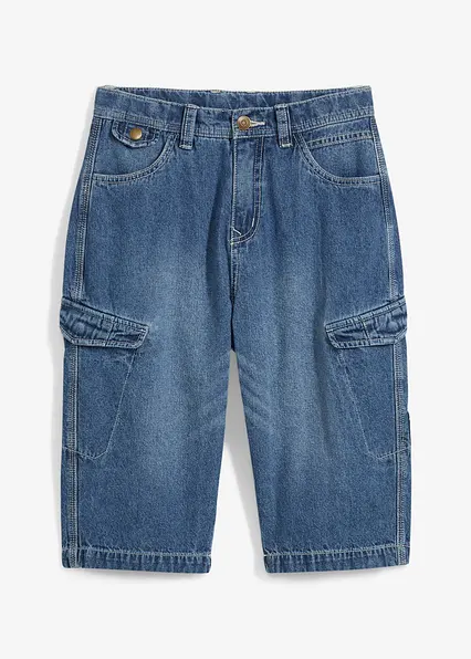 Jeans-Cargobermuda mit verstellbarem Bund, Loose Fit