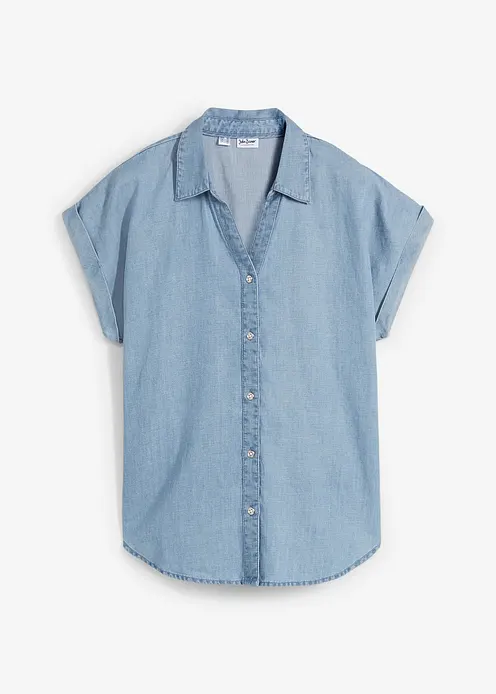 Lockere Jeans-Kurzarmbluse mit Leinen