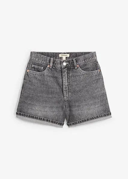 Lockere 5-Pocket-Shorts aus einem festen Baumwolldenim, der sich zunächst etwas steif anfühlt und durch häufiges Tragen weicher und lockerer wird. Hohe Bundhöhe mit Zip Fly und Knopf. Doppel gefalteter Saum. Innenbeinlänge in Gr. 42 ca. 11,5cm, maschinenwaschbar