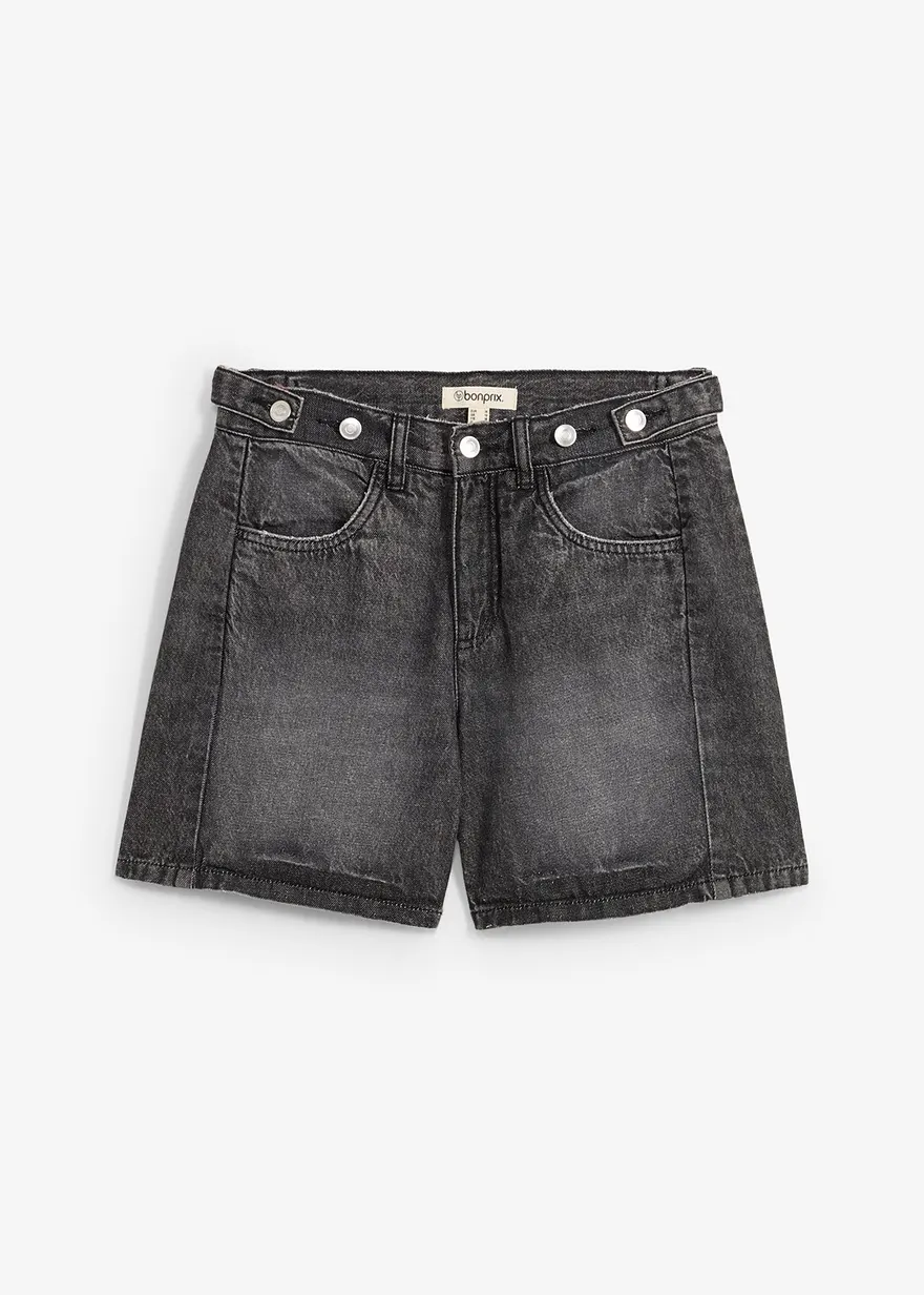 Lockere 5-Pocket-Shorts aus einem festen Baumwolldenim, der sich zunächst etwas steif anfühlt und durch häufiges Tragen weicher und lockerer wird. Mittlere Bundhöhe mit verstellbarem Riegel am Bund. Innenbeinlänge in Gr. 42 ca. 16,5 cm, maschinenwaschbar.