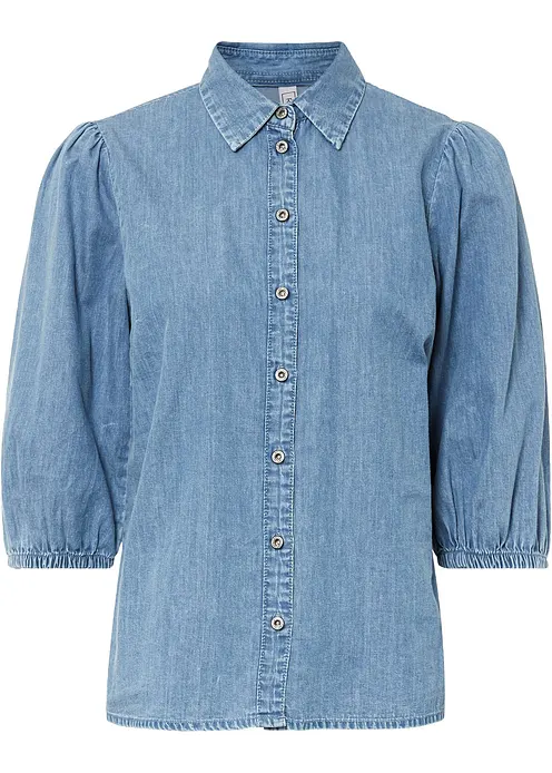 Jeansbluse mit Puffärmeln aus Bio-Baumwolle