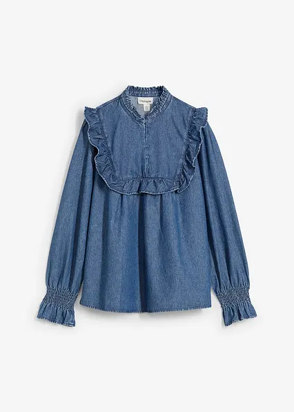 Jeansbluse mit Rüschen