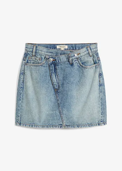 Jeansrock aus einem festen Baumwolldenim, der sich zunächst etwas steif anfühlt und durch häufiges Tragen weicher und lockerer wird. Gesamtlänge in Gr. 42 ca. 52cm, maschinenwaschbar.