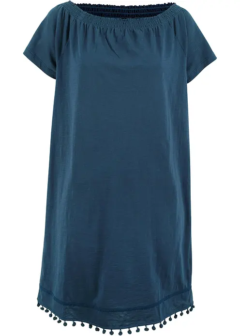 Baummwollkleid mit dezentem Carmenausschnitt und dekorativem Saum