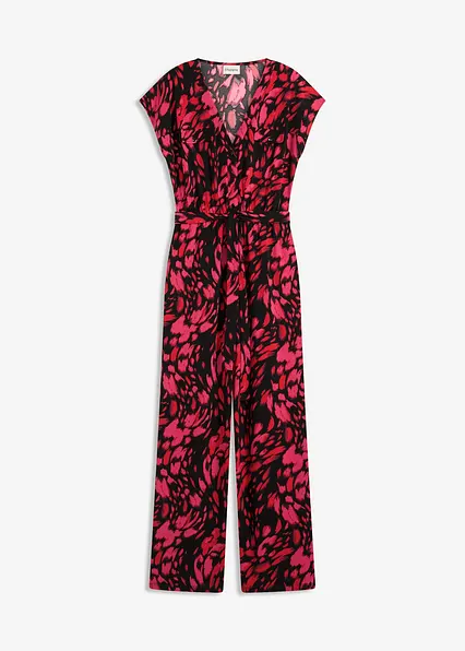 modisch bedruckter Jersey-Jumpsuit mit V-Ausschnitt