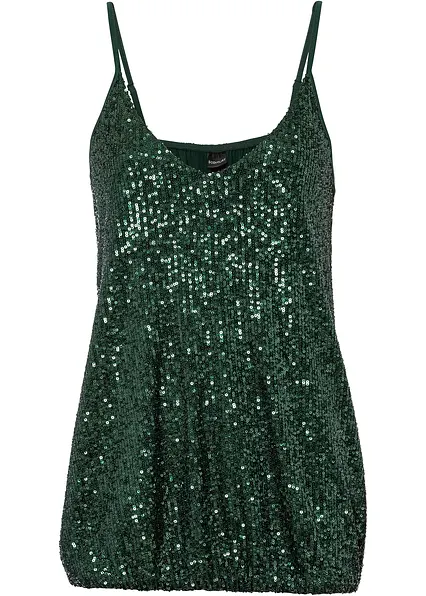 Spaghettiträger-Top mit Pailletten aus softem Viskose-Mix