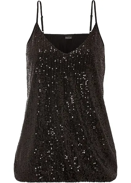 Spaghettiträger-Top mit Pailletten aus softem Viskose-Mix