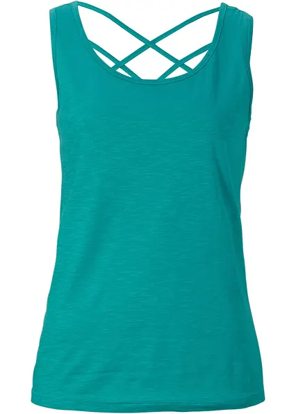 Baumwoll-Top mit Rundhals-Ausschnitt mit dekorativem Rückenausschnitt