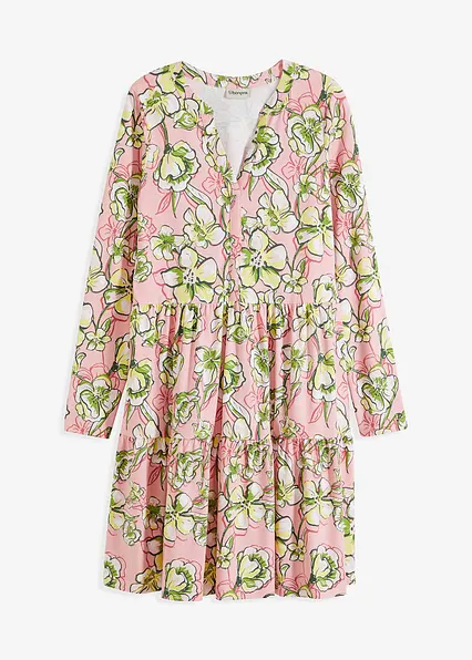 Jerseykleid aus elastischem Baumwoll-Mix in rosa von vorne - bonprix
