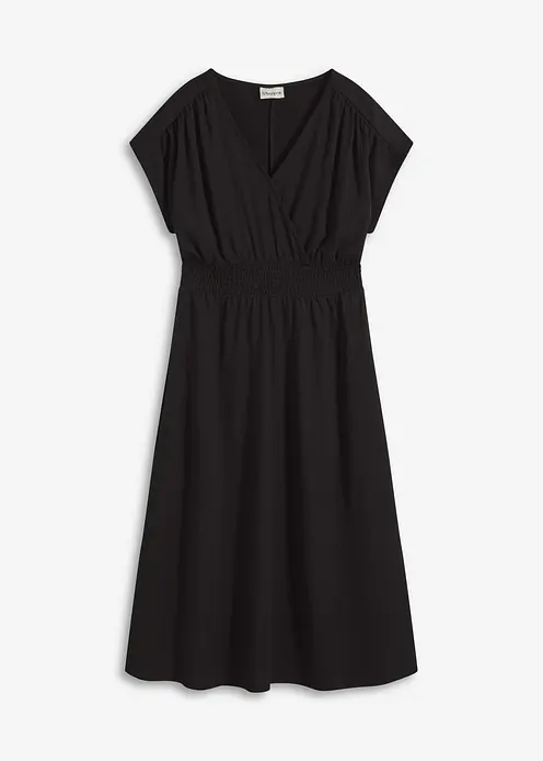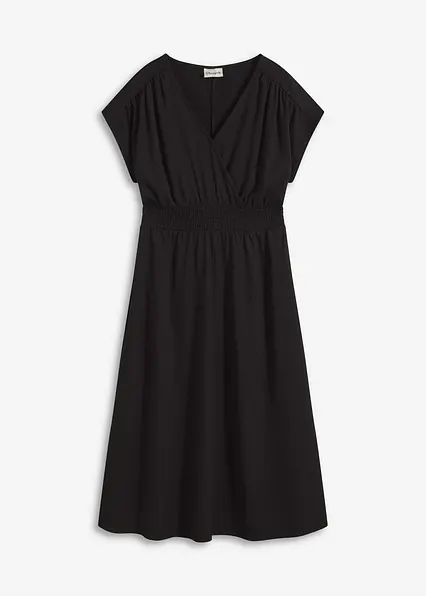 Gesmocktes Jerseykleid mit überschnittener Schulter