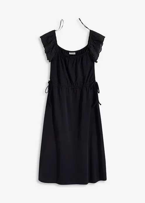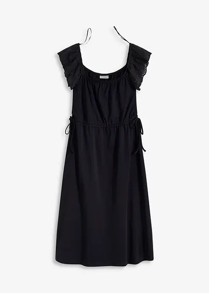 Jerseykleid mit Embroiderie Anglaise Volant-Ärmeln