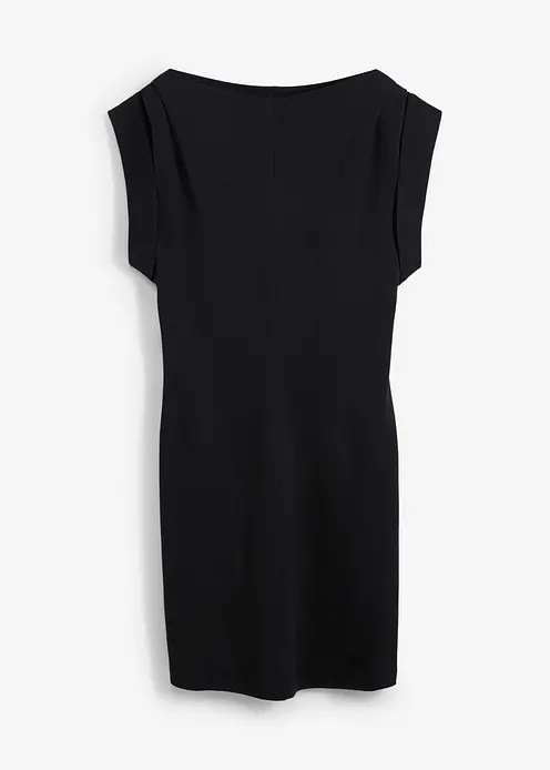 Kurzes ärmelloses Kleid mit Rundhalsausschnitt und überschnittenen Schultern sowie Teilungsnähten vorne und hinten
