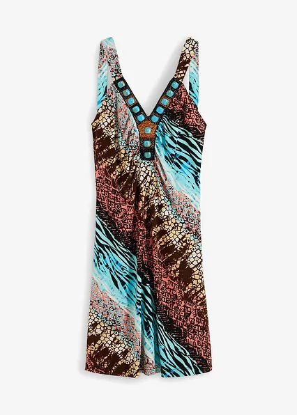 Modernes Sommerkleid mit eleganter Schmuckapplikation.