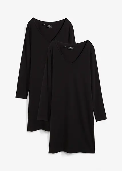 Jerseykleid mit V-Ausschnitt (2er Pack) in schwarz von vorne - bonprix