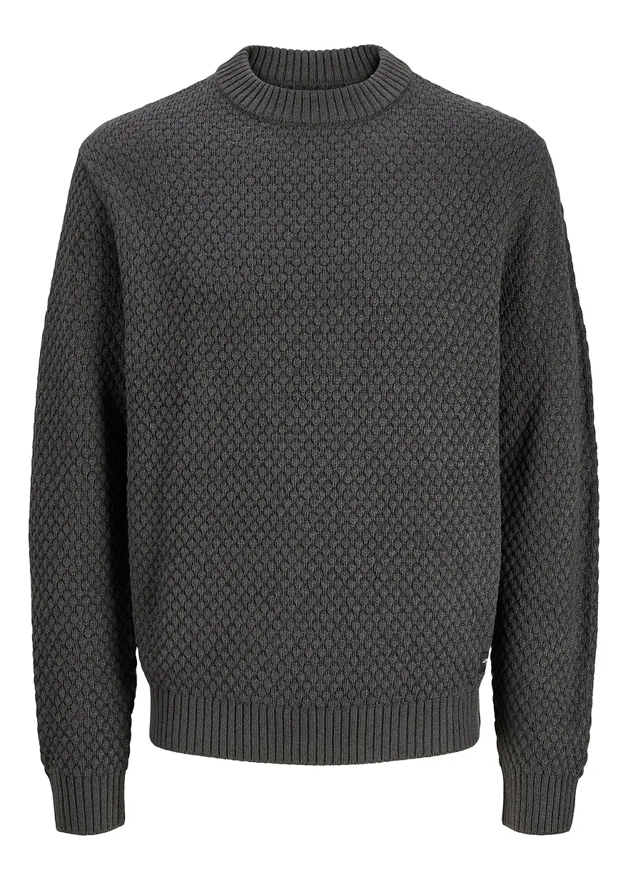 JJ REBEL - Lässiger Strickpullover aus bequemem Flachstrick mit Rundhalsausschnitt und gerippten Bündchen