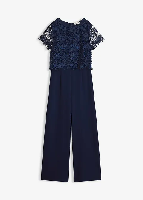 Kurzärmliger Jumpsuit mit Spitze und weitem Bein