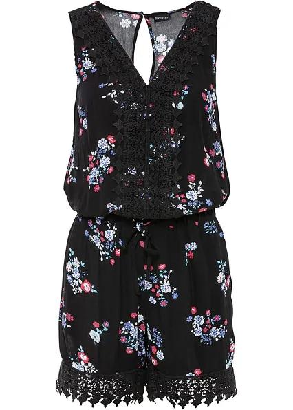 Kurzer Jumpsuit mit filigranem Spitzenbesatz