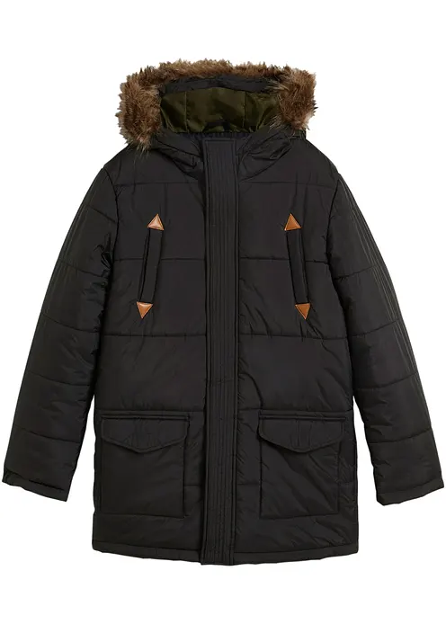 Winterparka mit Lederimitat-Details und Fellkapuze