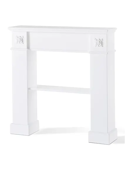 Die Kaminkonsole sorgt im Nu für eine besonders gemütliche Atmosphäre in jedem Wohnraum. Sie verfügt über einen Einlegeboden, auf dem Vasen oder Bilderrahmen dekorativ platziert werden können. Stellen Sie eine echte Kerze vor den Kamin, um die Besonderheit dieser Konsole zu unterstreichen. Die Kaminkonsole ist ein schöner Hingucker, der für eine Extraportion Gemütlichkeit sorgt.