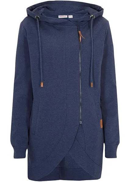 Bequeme Sweatjacke mit Kapuze und versetzten Reißverschluss