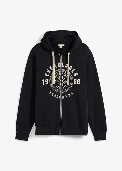 Kapuzen-Sweatjacke mit Komfortschnitt in schwarz von vorne - bonprix