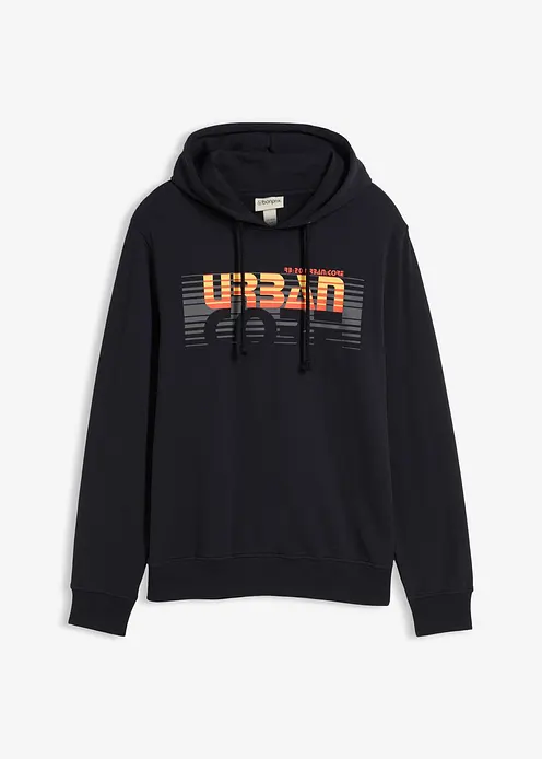 Cooles Sweatshirt mit Kapuze und Kordelzug sowie angesagtem Druck vorne, innen weich angeraut