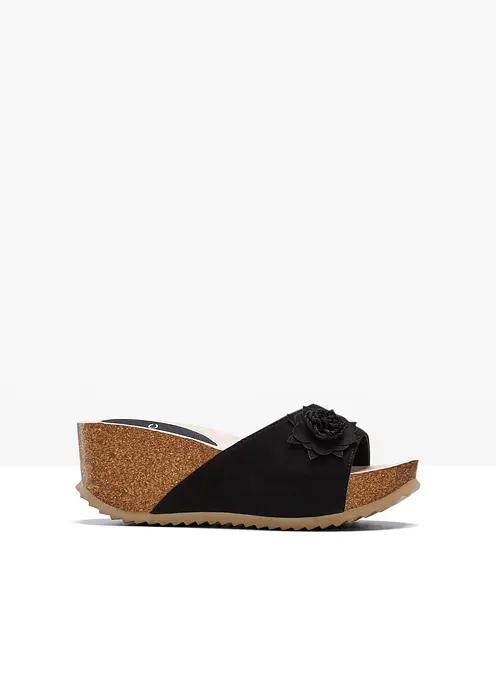 Modisch und bequem ist diese Keilpantolette von bpc. Sie begeistert durch eine schöne Blumenverzierung und präsentiert sich in moderner Farbgebung. Mit seiner angenehm weichen Innensohle aus Velourslederimitat sorgt der offene Schuh für einen hohen Laufkomfort. Dieser wird durch den bequemen Keilabsatz unterstützt. Die leicht profilierte Laufsohle aus Synthetik ermöglicht einen sicheren Halt. Harmoniert optimal mit lässigen Alltags- und Freizeitlooks: die Keilpantolette von bpc.