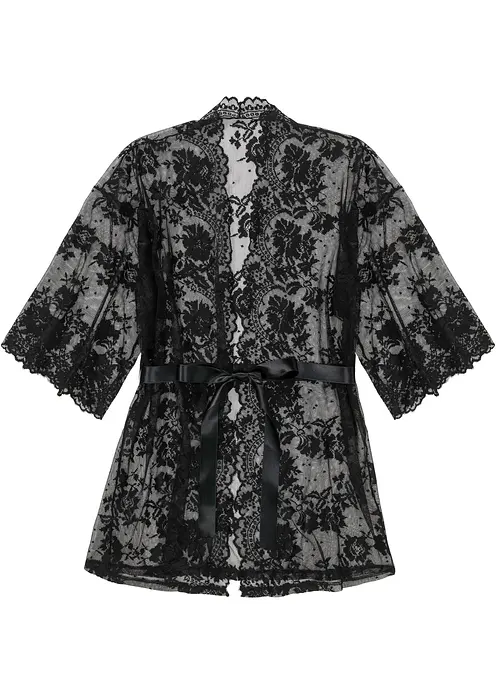 Wow! Dieser heiße Kimono umhüllt Ihre Kurven mit eleganter Spitze und lässt Ihre Kurven durchschimmern. Eine üppige Satin-Schleife verziert Ihre Taille und lässt sie variabel binden.Kombinieren Sie den Kimono über Ihren Pyjama oder setzen Sie sich mit passenden Dessous heiß in Szene für eine unvergessliche Nacht.