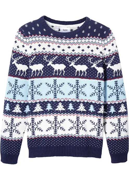Norweger-Pullover aus reiner Baumwolle in blau von vorne - bonprix