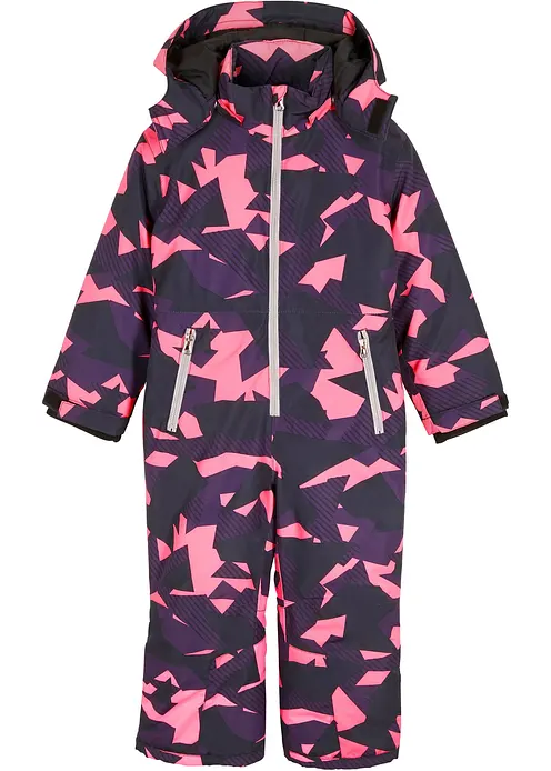 Mit diesem warmen und bequemen Skianzug von bpc macht der Winter noch mehr Spaß. Mit seinem auffälligen Allover-Print ist der Schneeanzug ein absoluter Hingucker. Dank 3000 mm Wassersäule und verschweißten Nähten bietet der Schneeanzug Schutz gegen Wind, Kälte und Nässe. Die Reißverschlusstaschen bieten sicheren Stauraum für wichtige Utensilien wie Liftkarte, Taschentücher oder Portemonnaie. Der Kinderoverall, der mit einem Reißverschluss vorn verschlossen wird, punktet zusätzlich mit Schneefang an den Säumen und einer abnehmbaren Kapuze. Der Overall sorgt für optimalen Schutz vor Kälte, Wind und Nässe.