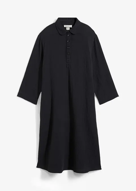 Hemdkleid aus Baumwolle in A-Linie. Mit Knopfverschluss und 3/4 Ärmeln.