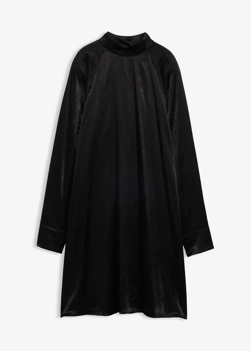 Minikleid mit hohem Kragen, Fledermausärmel und seitlichen Eingrifftaschen
