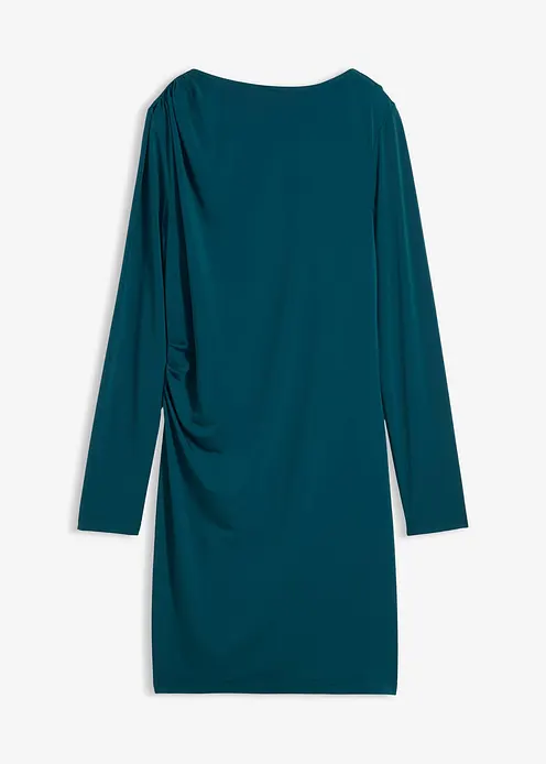Drapiertes Minikleid mit Taillenfokus sowie U-Bootausschnitt. Verdeckter Reißverschluss hinten