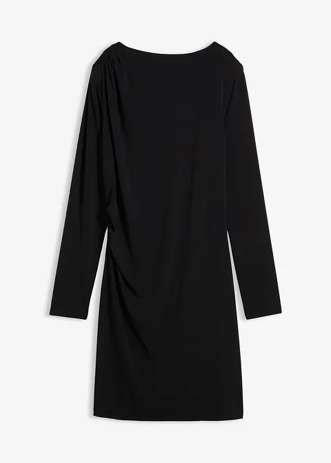 Drapiertes Minikleid mit Taillenfokus sowie U-Bootausschnitt. Verdeckter Reißverschluss hinten