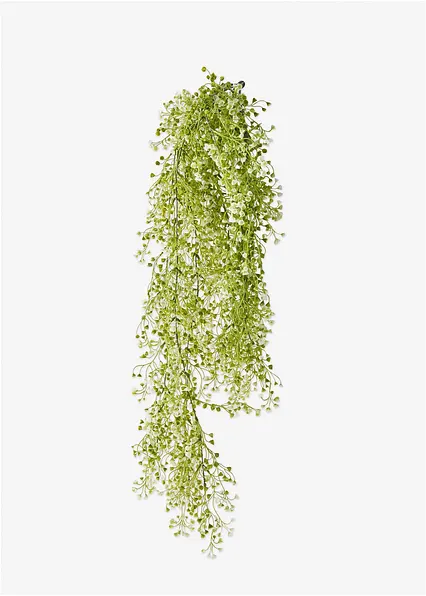 Die Kunstblumen-Ranke überzeugt durch ihr dichtes Blattwerk sowie die kleinen hellen Blüten. Sie ist dem Original täuschend echt nachempfunden und begeistert mit ihrer detailreichen Optik. Die einzelnen Ranken der Kunstpflanze laufen zu einem Einsteckstab zusammen. Dieser lässt sich in Blumentöpfe oder Pflanzkästen einstecken. Insbesondere in kleinen Räumen mit wenig Lichteinfall erweist sich die Pflanze als dekorative Bereicherung. Zudem punktet die Kunstblumen-Ranke mit kleinen Blüten mit pflegeleichten Eigenschaften.