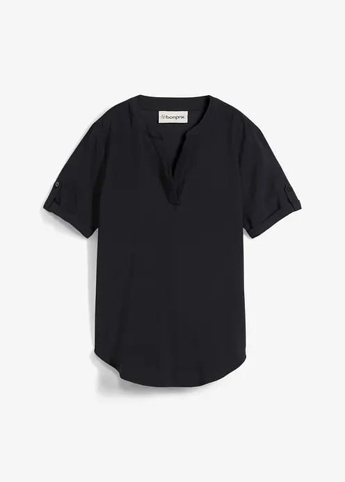Bluse mit lässigem V-Ausschnitt und nach oben gebundenen Ärmeln
