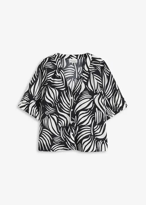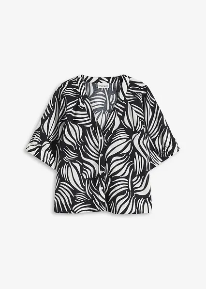 Kurzarmbluse in Leinenoptik