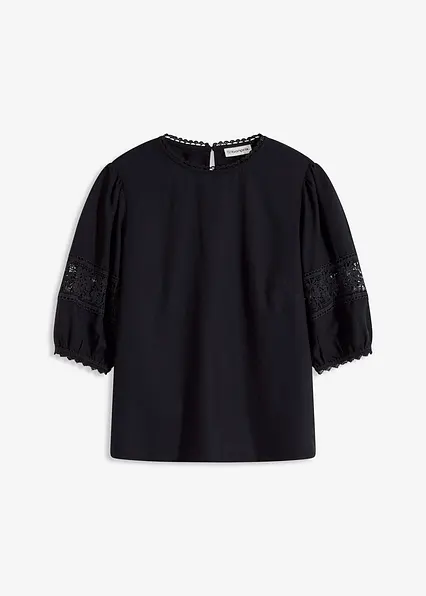 Kurzarmbluse mit Leinenanteil in schwarz von vorne - bonprix