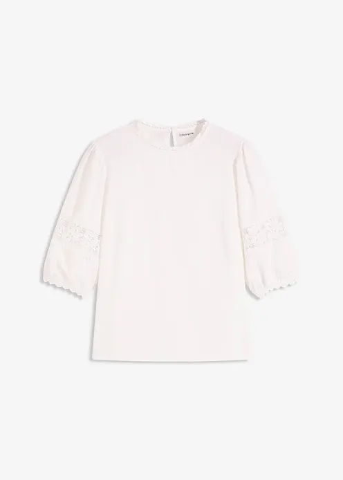 Kurzarmbluse mit Leinenanteil in weiß von vorne - bonprix