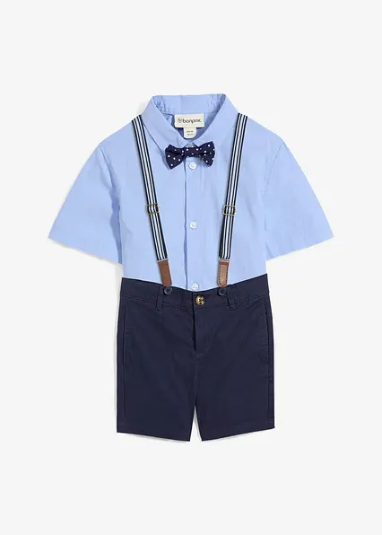 Kurzarmhemd, Chino-Bermuda, Hosenträger und Fliege (4-tlg.Set)