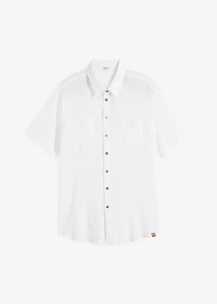 Kurzarmhemd in Crinkel-Optik aus reiner Baumwolle