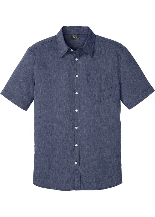 Leinen-Mix-Kurzarmhemd mit einer Tasche auf der Brust