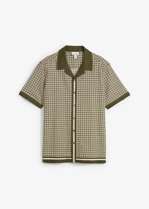 Modisches bedrucktes Kurzarmhemd mit Leinen Anteil im Regular Fit