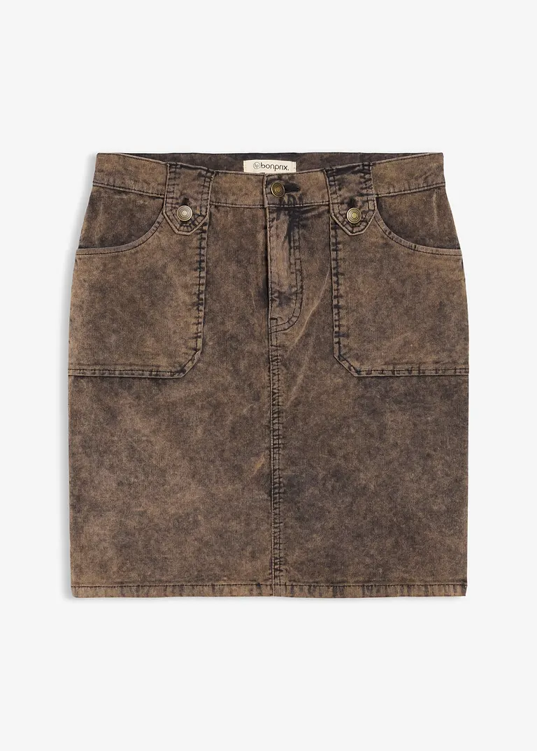 Modisch kurzer Cordrock mit Taschen in verwaschener Optik