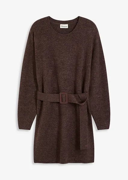 Kurzes Strickkleid mit softem Wollanteil und Gürtel