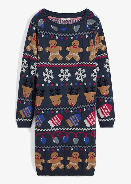 Gemütliches Strickkleid mit bequemen Schnitt und weihnachtlichem Motiven