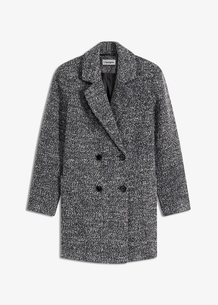 Zweireihiger Kurzmantel in melierter Wolloptik mit bequemen Tragekomfort