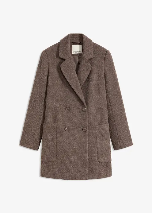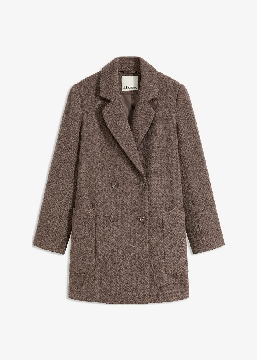 Zweireihiger Kurzmantel in melierter Wolloptik mit bequemen Tragekomfort